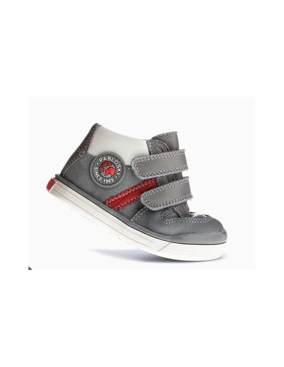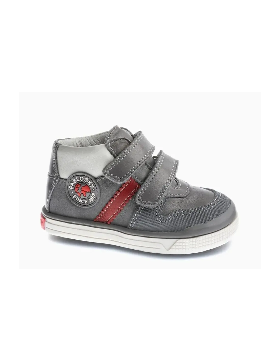 Bota en piel natural con cierre de doble velcro y puntera reforzada, ancha. Forro y plantilla de cuero con suela de goma antideslizante.