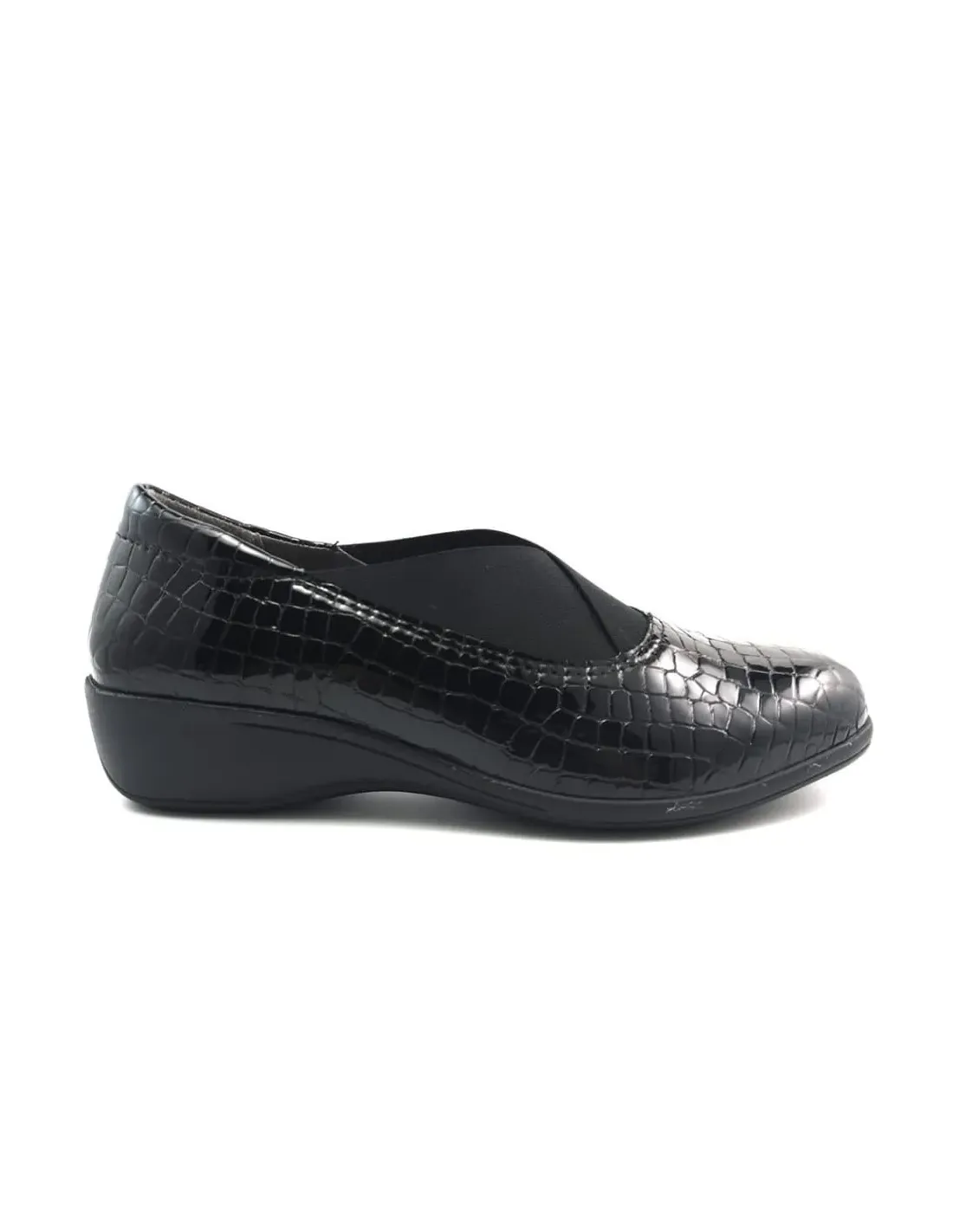 Zapato en piel natural coco con elástico en empeine para una mayor sujeción. Forro de cuero y plantilla de descanso, acolchada en cuero. Suela de goma antideslizante con cuña baja.