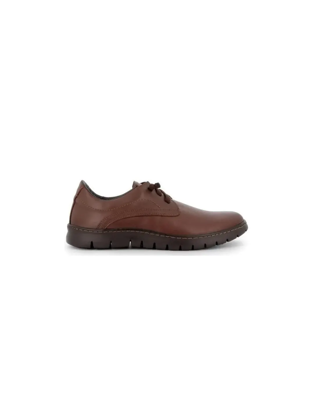 Zapato en piel natural. Cierre mediante cordones elásticos que permiten una mejor sujeción y facilitan la puesta. Es perfecto para personas con movilidad reducida a la hora de calzarse. Forro y plantilla, acolchada de descanso, en cuero. Suela de goma antideslizante.