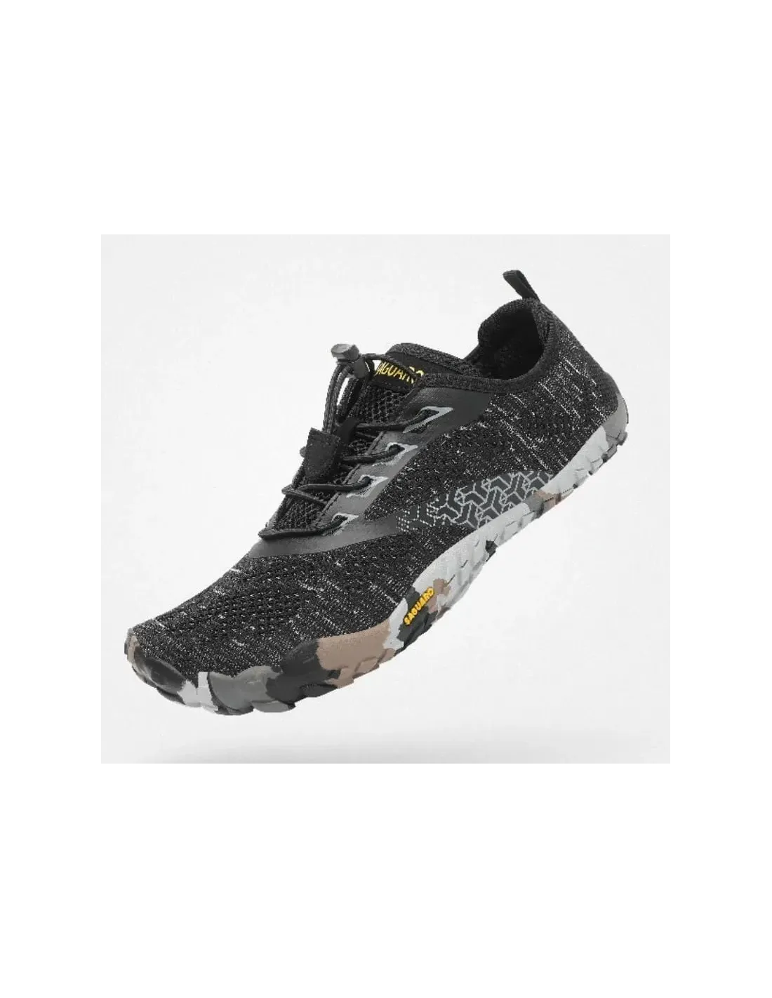 Deportivo ergonómico barefoot fabricados en malla más EVA con orificio en forma de panal, 89% poliéster y 11% elastán. Suela 100% de caucho natural sin drop. Plantilla extraíble. Cierre rápido con cordón elástico ajustable. Se caracterizan por ser flexibles, con puntera ancha, planas, livianas y con suela delgada.