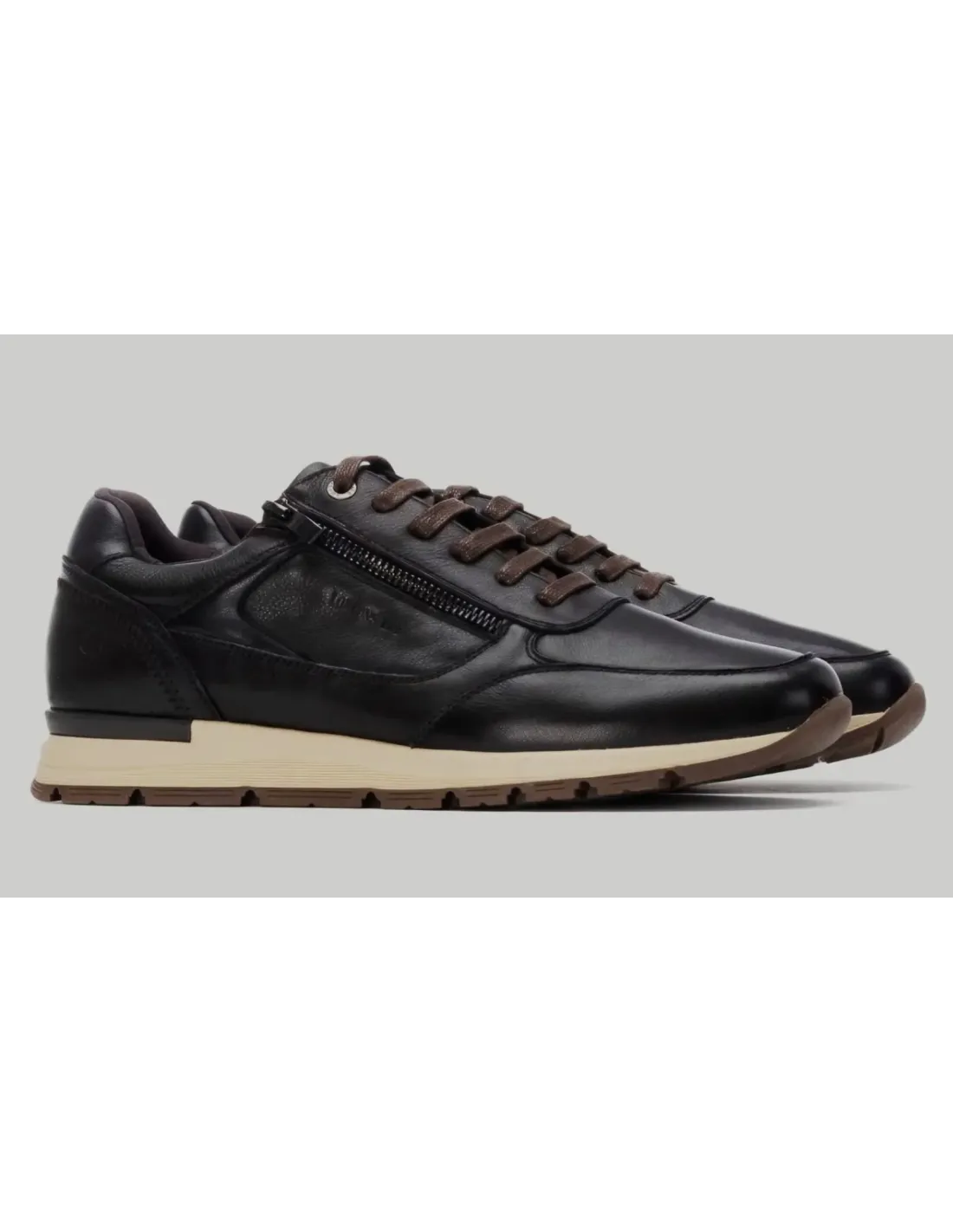 Zapato casual de corte deportivo en piel natural. Cierre mediante cremallera lateral exterior con cordones, ajustables, de algodón. Forro de cuero y plantilla, extraíble, de descanso. Empuñadura acolchada que previene de roces. Suela de goma antideslizante.