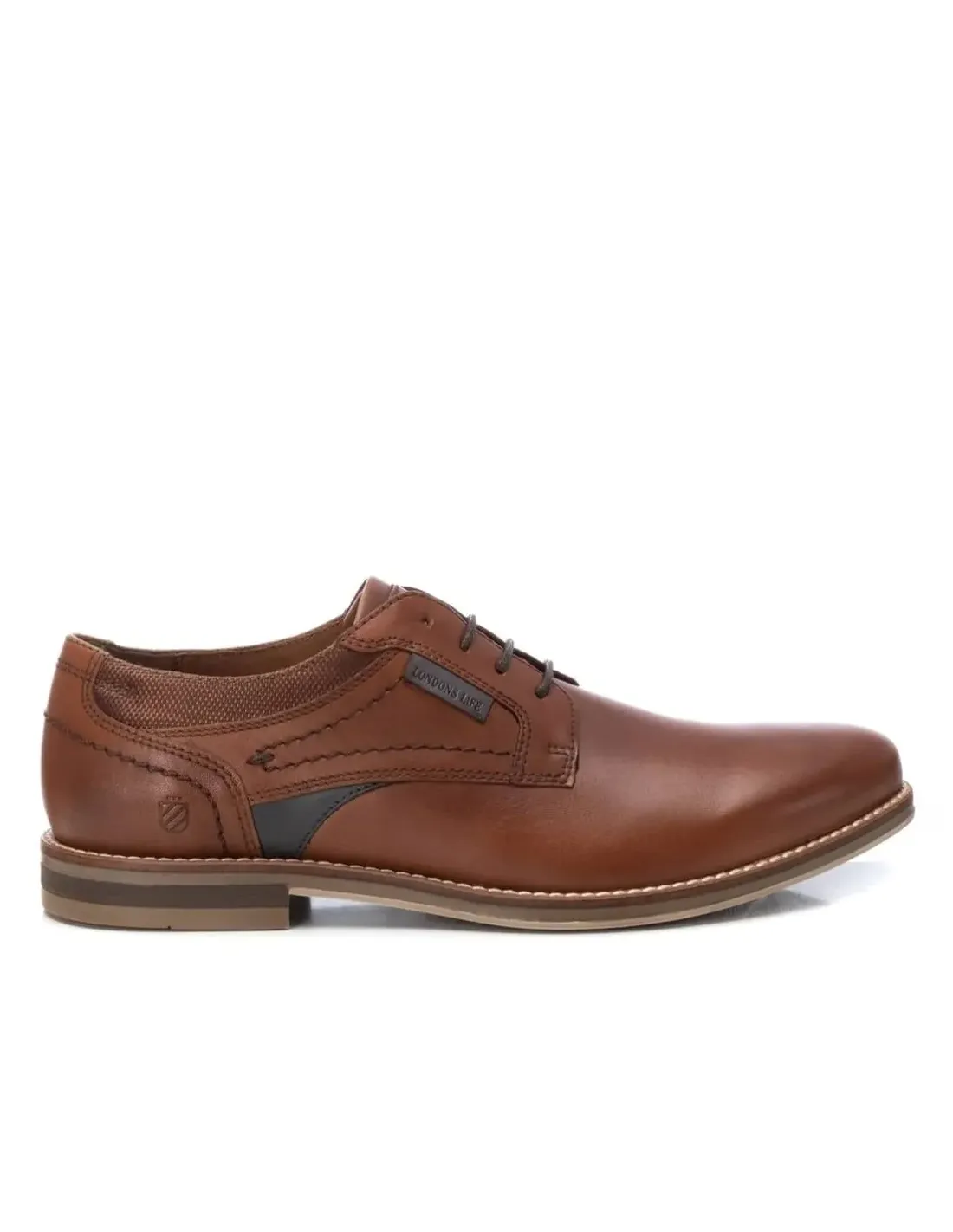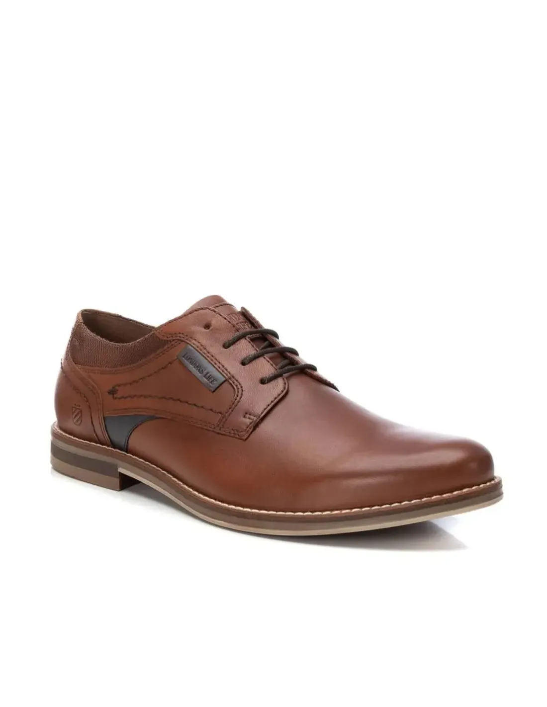 Zapato en piel natural de alta calidad. Cierre mediante cordones ajustables. Forro de cuero y plantilla de descanso. Suela de goma antideslizante