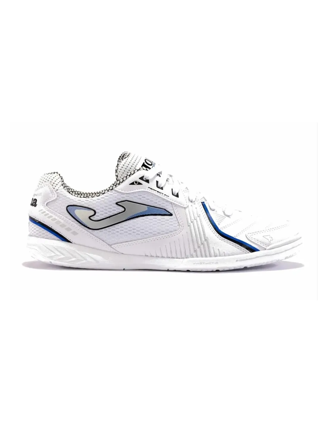 Deportivo de fútbol sala con un excelente agarre. Ajuste mediante cordones, de algodón. Plantilla acolchada y suela flexible, de goma, que facilita la agilidad y velocidad. Diseño ligero con buena trasnpirabilidad.