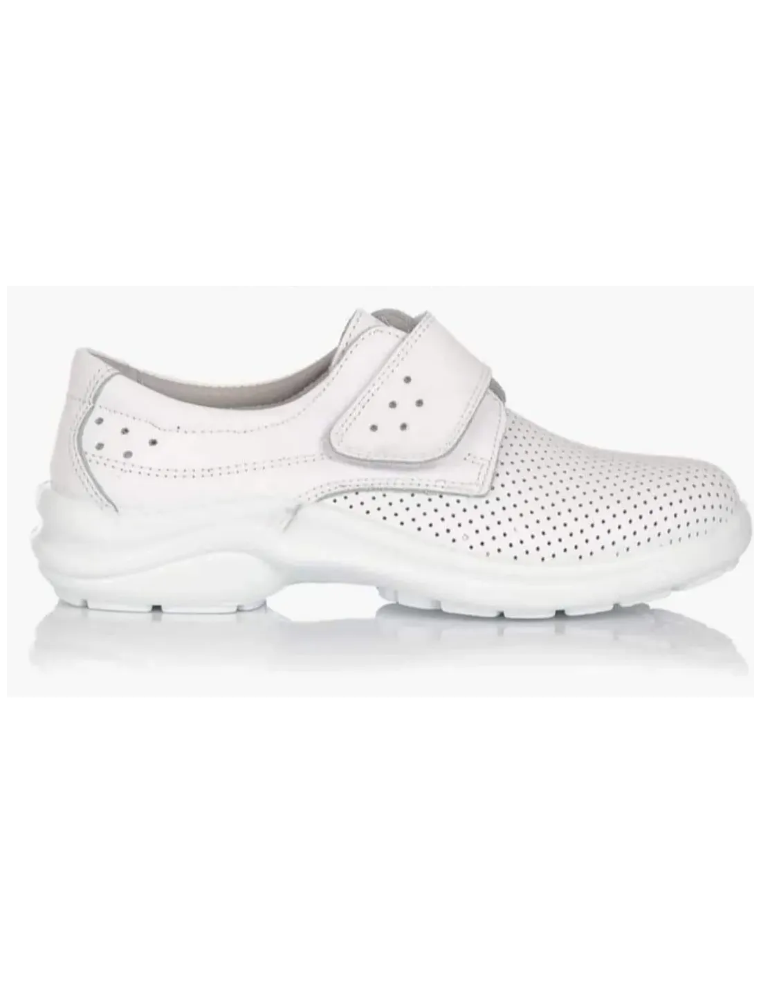 Zapato de trabajo en piel con cierre de velcro. Plantilla de descanso y suela antideslizante
