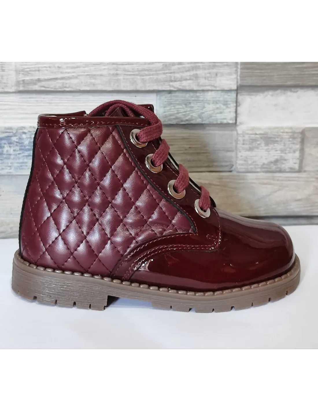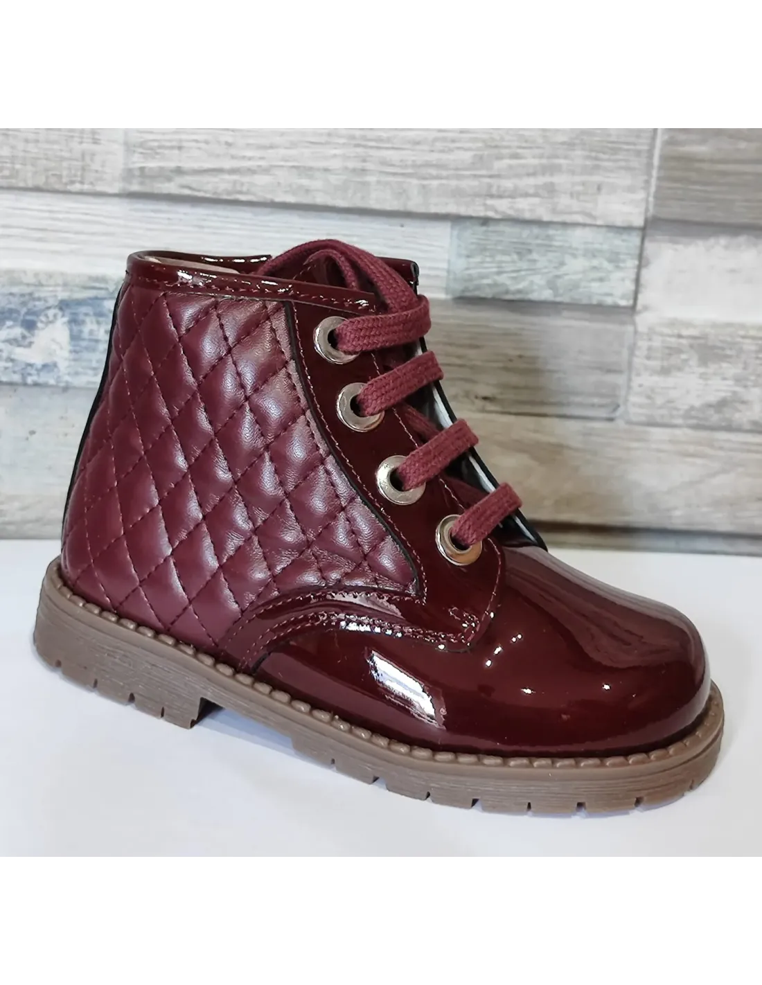 Charol con puffy guinda