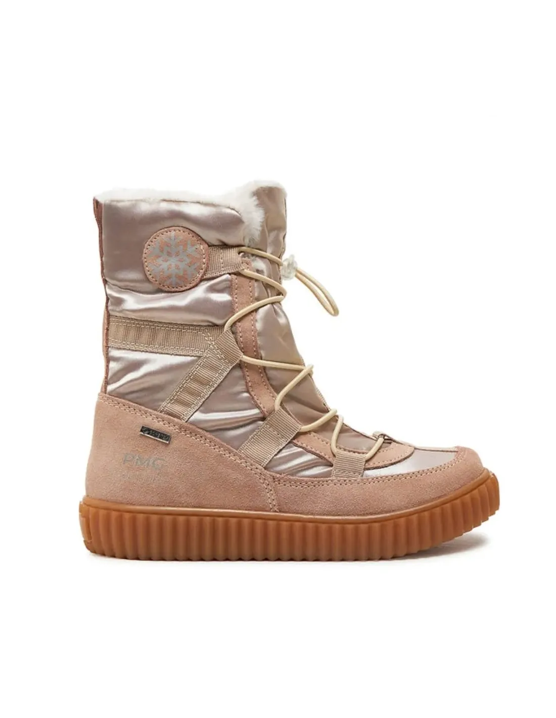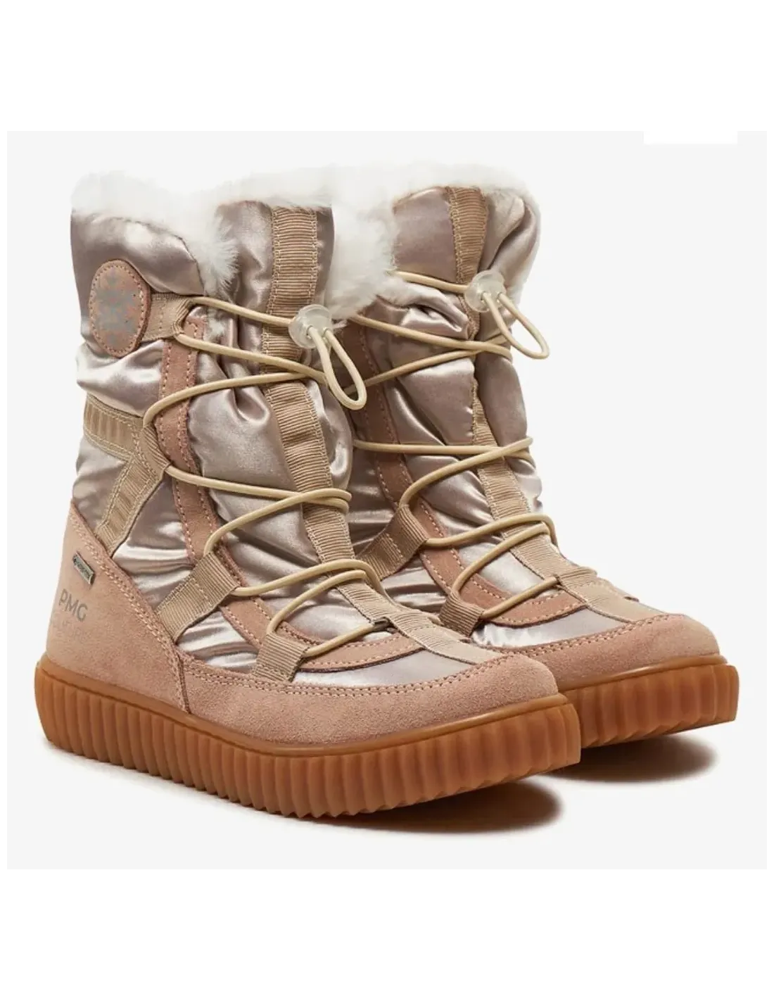 Bota de piel de cabra combinada con textil, con membrana de Goretex. Cierre mediante cordones ajustables con tirador. Forro de pelo de cabra, muy confortable y calentito. Suela de goma antideslizante. Ideal para preesqui, nieve y frío.