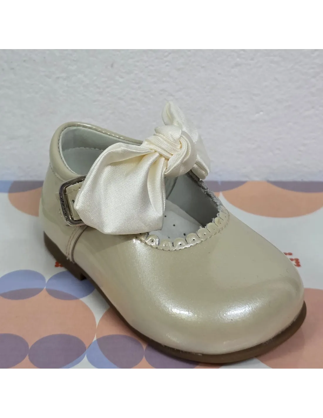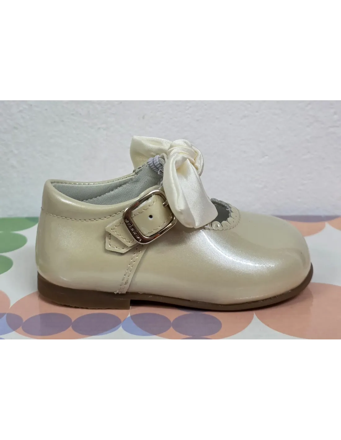 Zapato mercedes en charol piel. Cierre mediante correa de hebilla con adorno de lazo, extraíble. Forro y plantilla, extraíble, de cuero. Suela de goma antideslizante