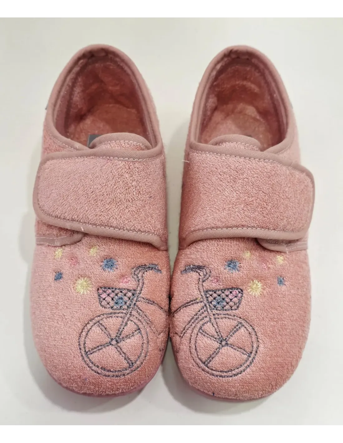Zapatillas de casa en rizo (toalla) de corte blucher. Cierre mediante velcro ancho. Forro y plantilla, antibacteriana, en textil. Suela de goma antideslizante