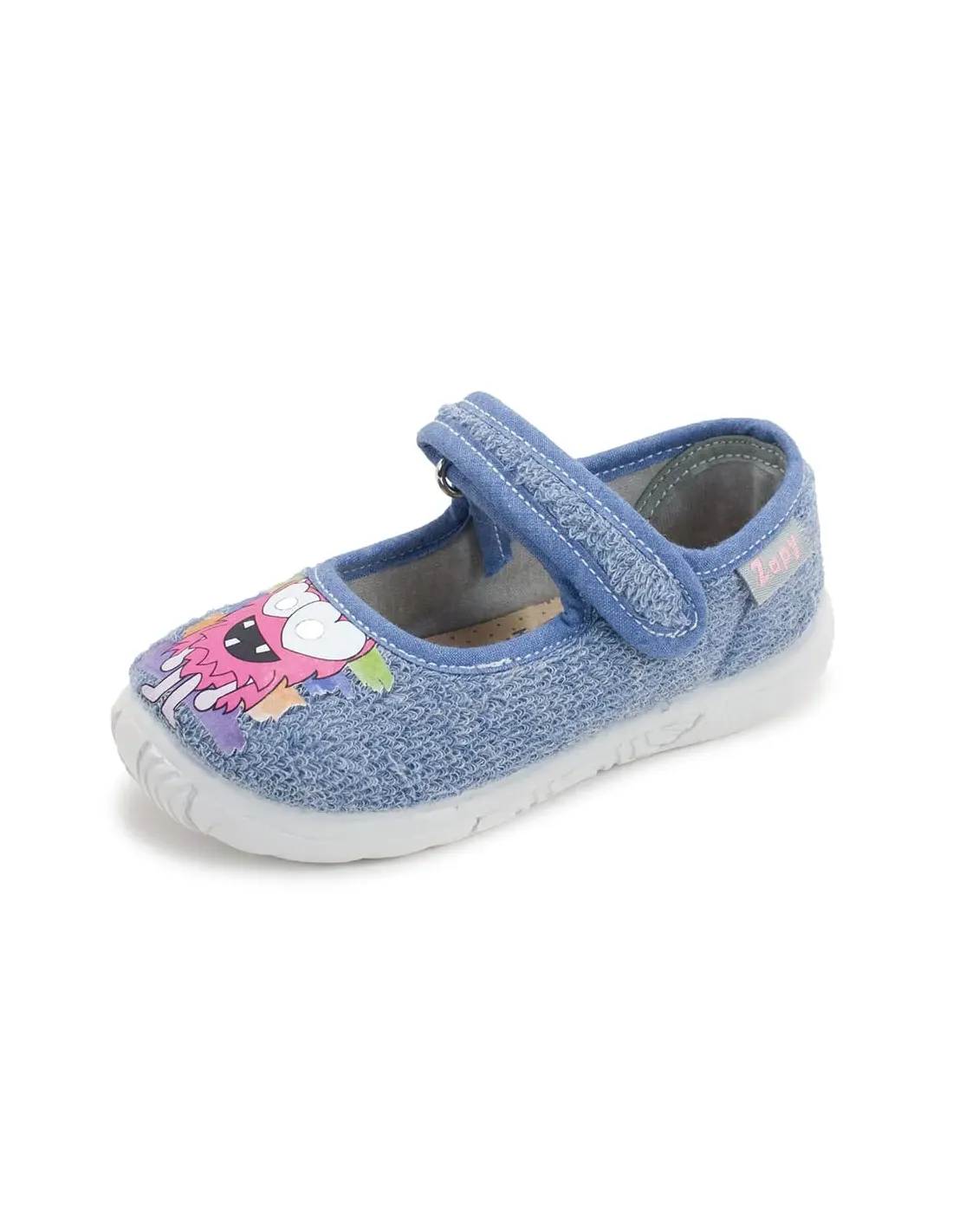 Zapatilla de casa en rizo, corte mercedes, con cierre de velcro y suela de goma antideslizante. Plantilla antibacteriana