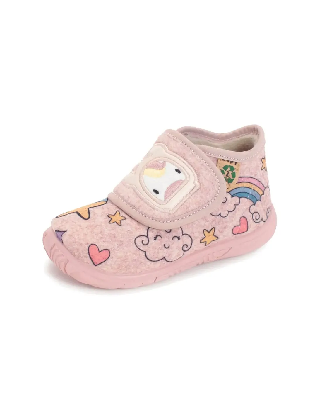 Zapatilla de casa abotinada, en felpa  con forro de felpa. Cierre de velcro y suela de goma antideslizante, sin drop. Muy flexibles y ligeras