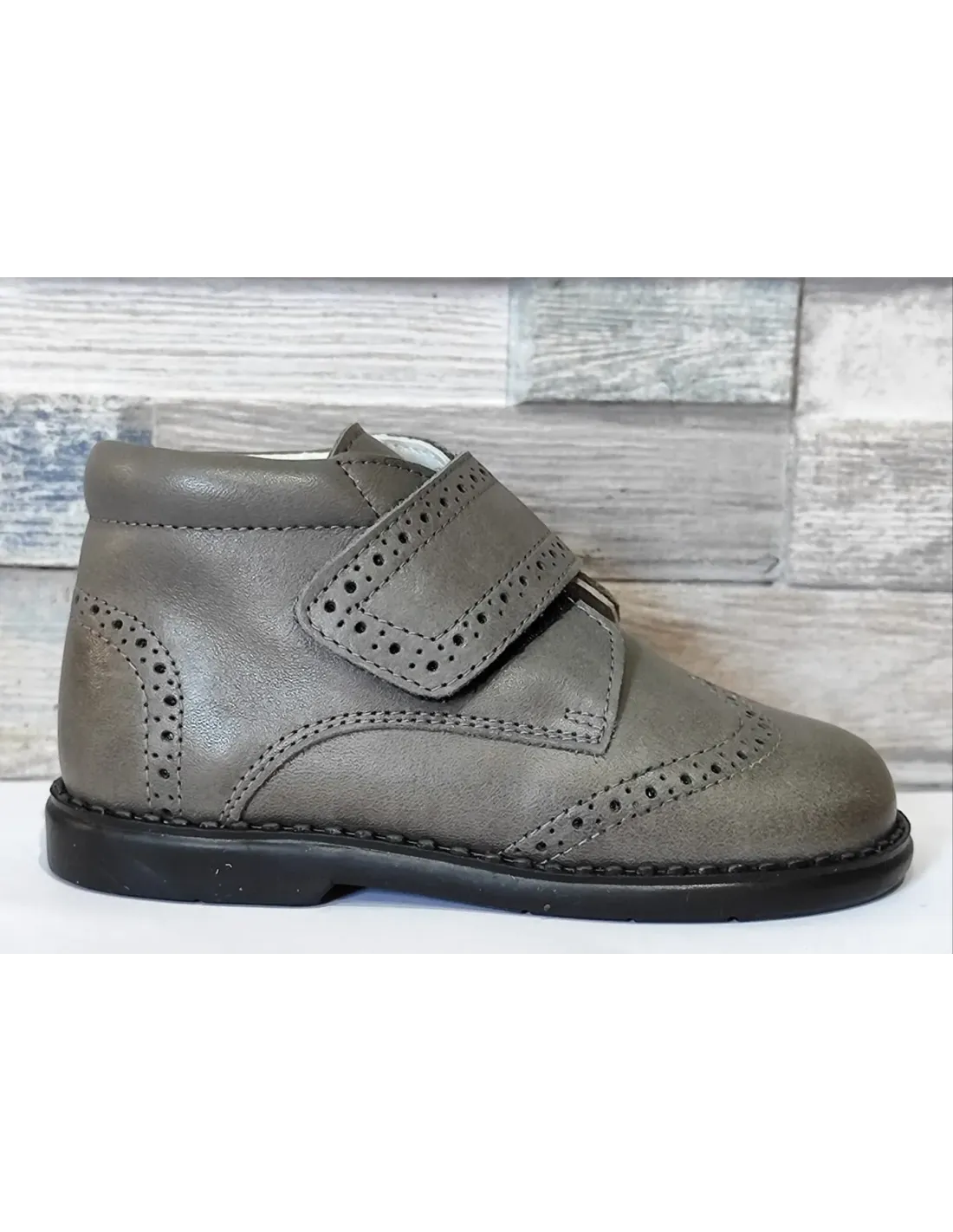 Botita en piel natural con cierre mediante velcro ancho. Forro y plantilla, extraíble, de cuero. Suela de goma antideslizante