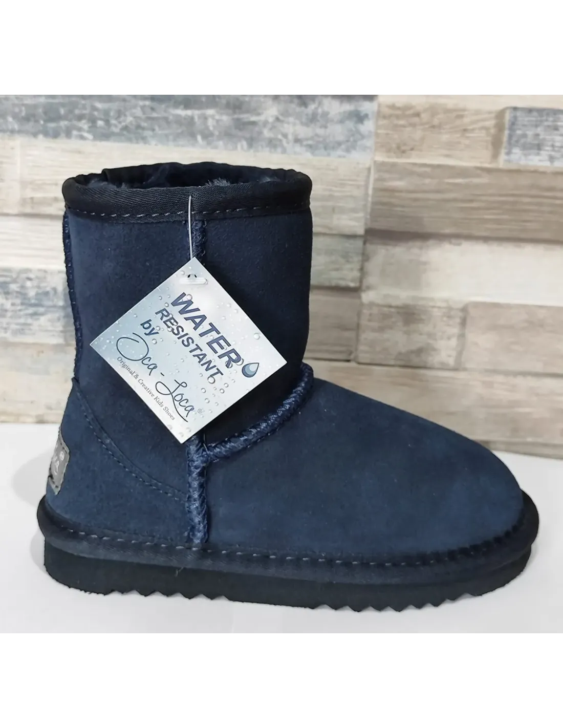 Australiana de serraje con water repelent, preparada para el agua. Forro y plantilla de pelo. Suela antideslizante