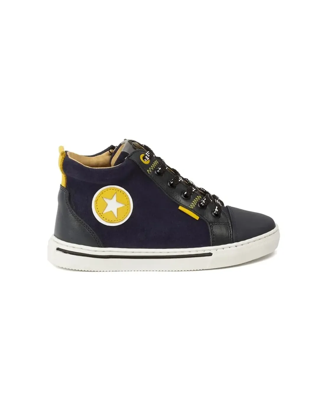 Bota de corte deportivo, en piel natural combinado con serraje. Cierre mediante cremallera lateral con cordones ajustables. Puntera engomada. Forro y plantilla de cuero. Suela de goma antideslizante.