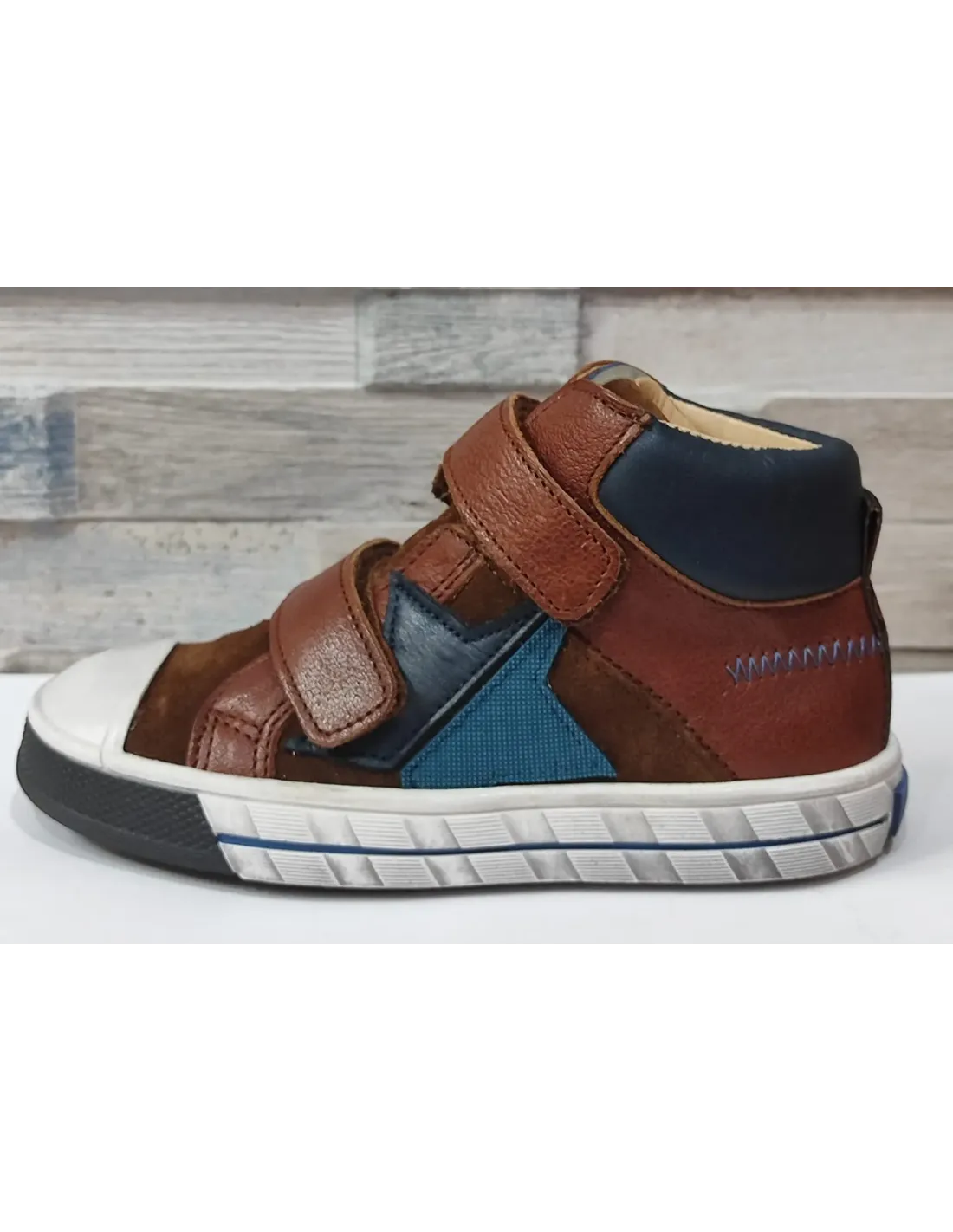 Bota de corte deportivo en pie natural combinada con serraje. Cierre mediante velcro doble. Empuñadura acolchada. Puntera engomada para proteger de roces. Forro y plantilla de cuero. Suela de goma antideslizante.
