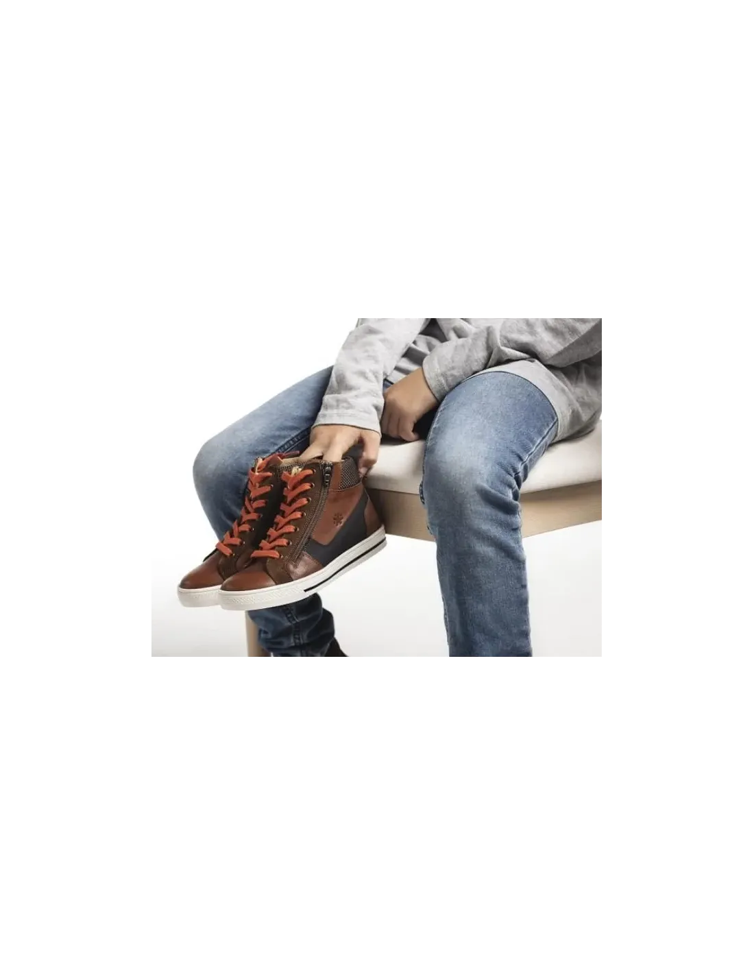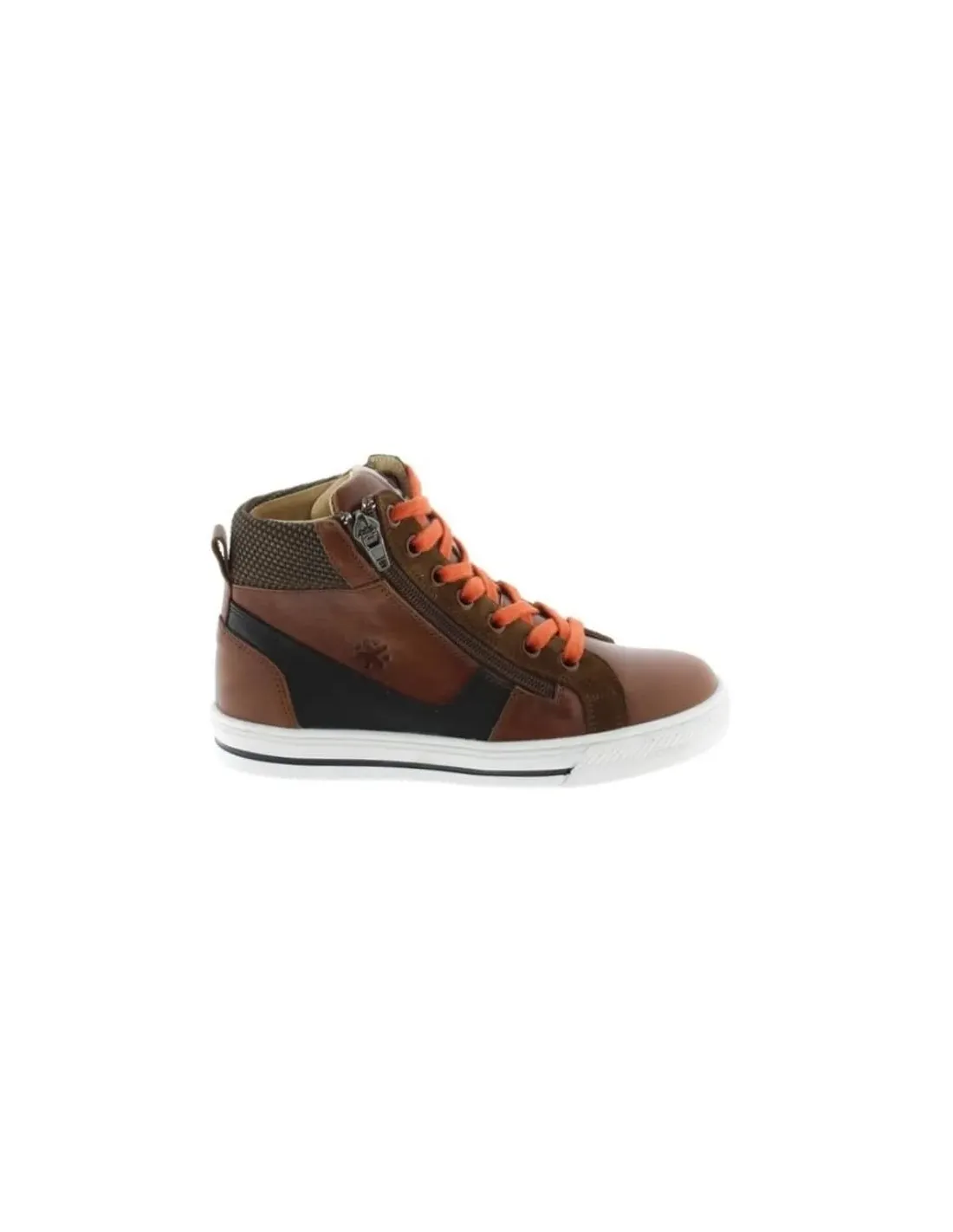 Bota de corte deportivo en piel natural. Cierre mediante cremallera lateral exterior con cordones ajustables, de algodón. Empuñadura acolchada. Forro y plantilla de cuero. Suela de goma antideslizante