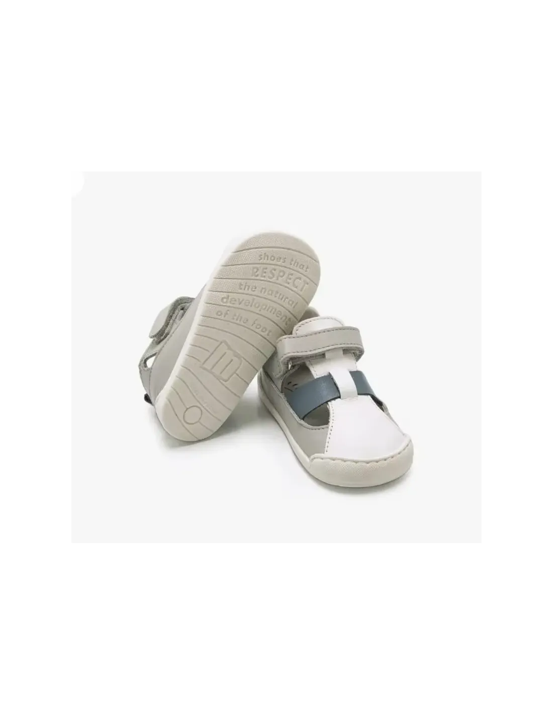 Sandalia, estilo pepito, de corte respetuoso, en piel, con cierre de velcro. Forro de piel con plantilla, extraíble, textil. Puntera ancha y talonera engomadas. Suela de goma, antideslizante, sin drop.