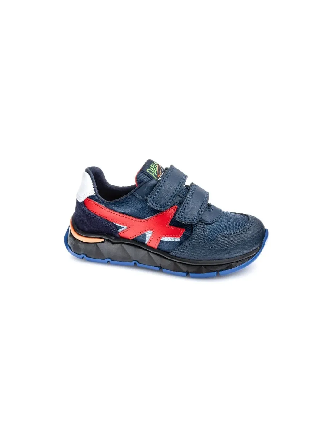 Deportivo en serraje combinado con nylon. Cierre de velcro con cordones elásticos y puntera reforazada.  Forro y plantilla, extraíble,  de cuero.  Suela ultraligera de goma antideslizante, con diseño de textos