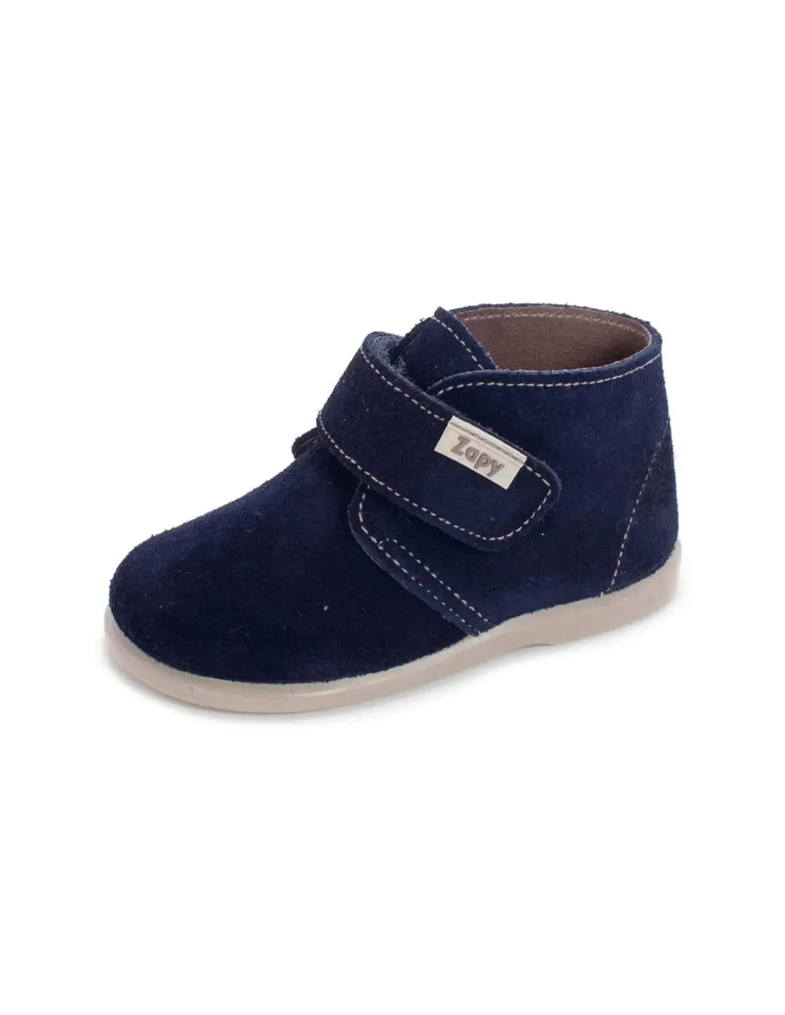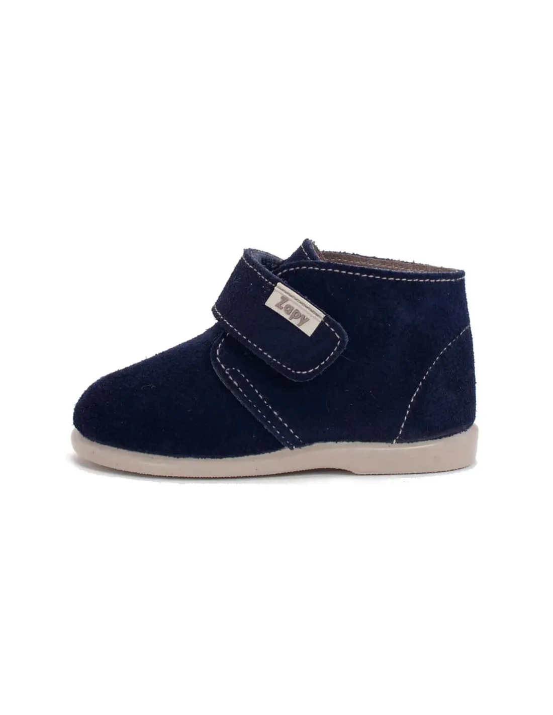 Pasota en serreje natural (Pisamierda) con cierre de velcro ancho. Corte respetuoso con puntera ancha, muy flexible y ligero. Forro y suela de cuero. Suela de goma, antideslizante, sin drop.