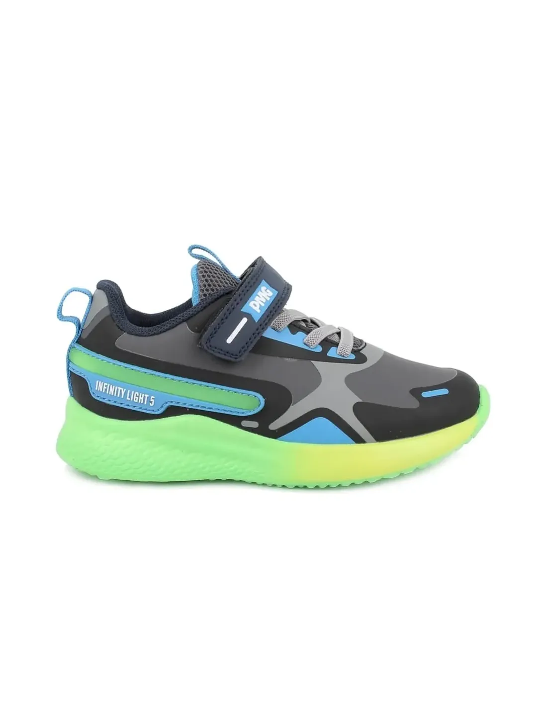 Deportivo de moderno diseño, fabricadas con materiales duraderos, en napa. Lágrima lateral con luz. Cierre de velcro con cordones elásticos. Suela deportiva antideslizante.