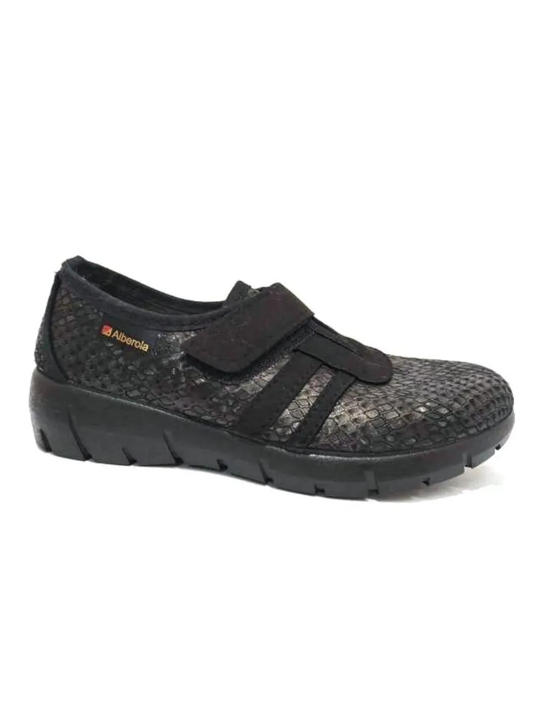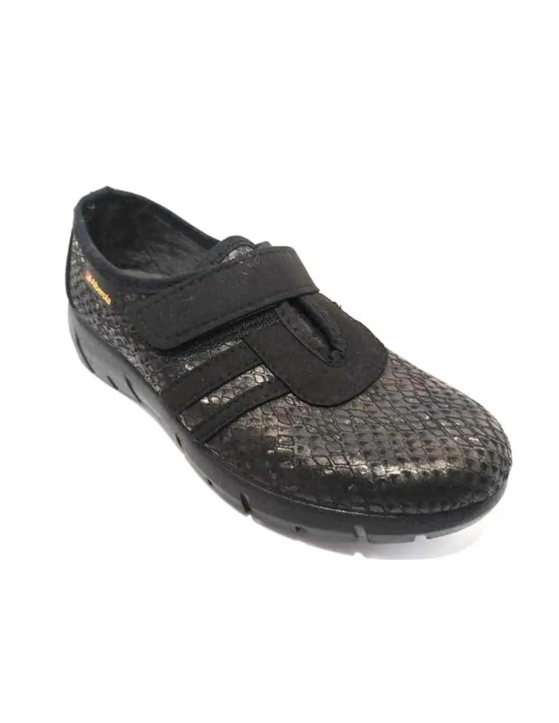 Zapatilla de casa, también para exterior, en textil. Cierre mediante velcro. Forro afelpado con plantilla acolchada. Suela serrada de goma antideslizante.