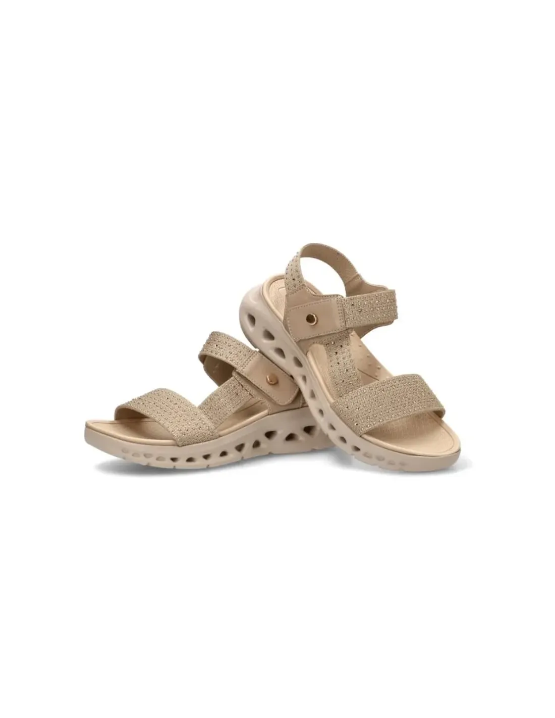 Sandalia que ofrece bienestar con delicadeza y sofisticación, diseñado para la mujer que busca un calzado saludable y ergonómico sin renunciar a la estética luminosa y moderna. Empeine fabricado con materiales de primera calidad con un acabado de brillo sutil. Pensada para ofrecer una sujeción total del pie y evitando cualquier punto de presión. Suela plana con diseño anatómico garantizando un apoyo equilibrado en cada paso. La suela destaca por su ligereza y capacidad de absorción de impactos.